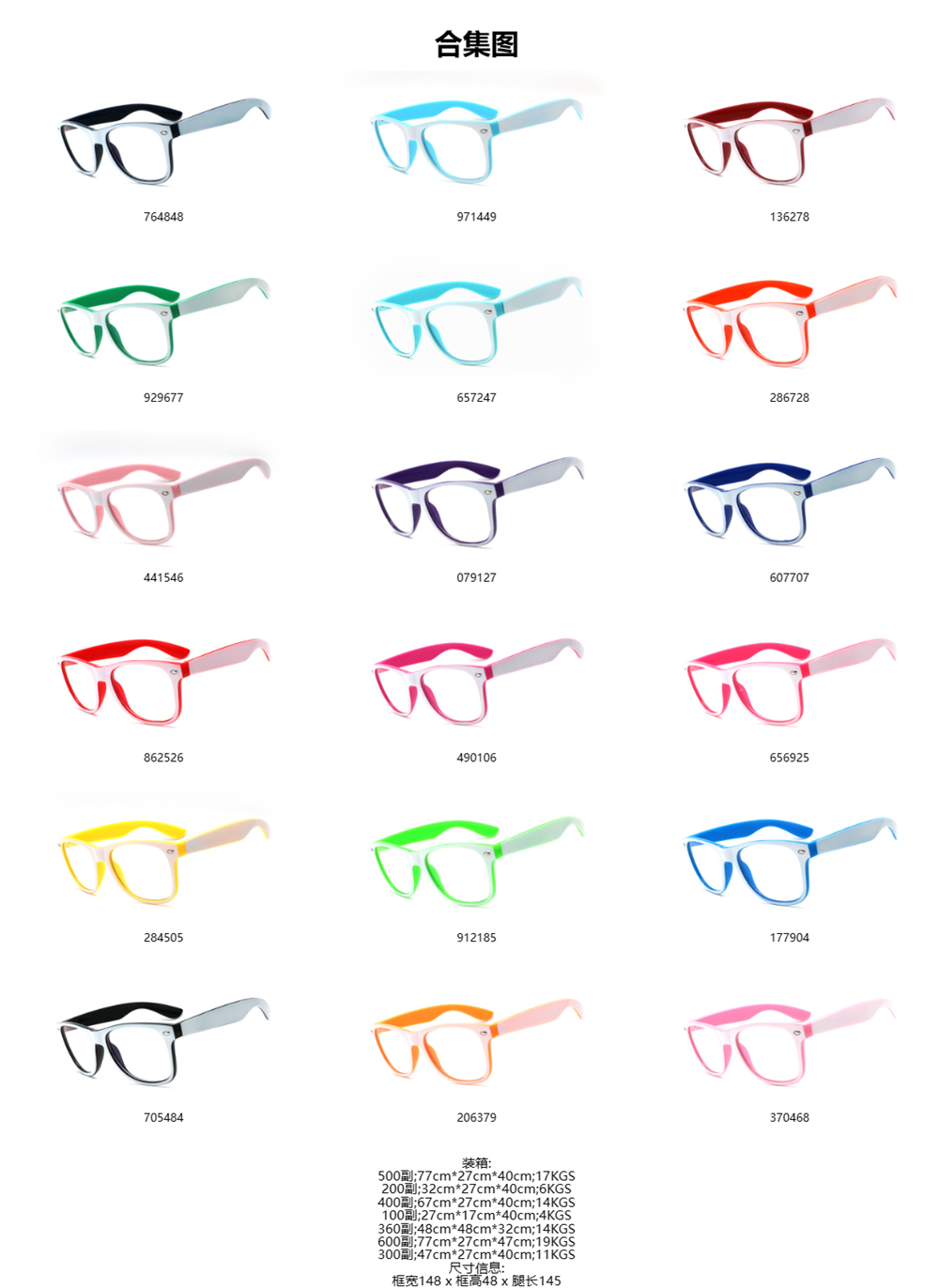 镜框材质:pc全新塑料 满足各种环保要求