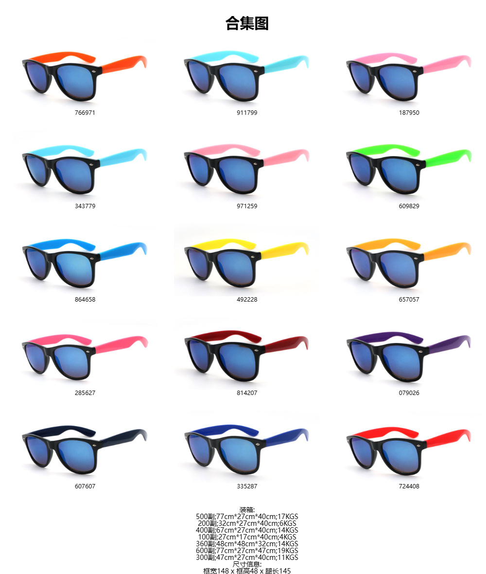 冰蓝水银冰蓝膜 黑框彩脚 徒步旅行者促销礼品太阳镜 0星,基于0条评论