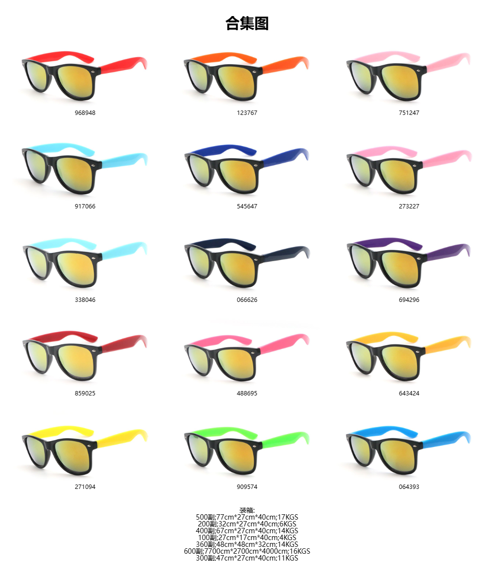红水银红膜 黑框彩脚 徒步旅行者促销礼品太阳镜 | 90000