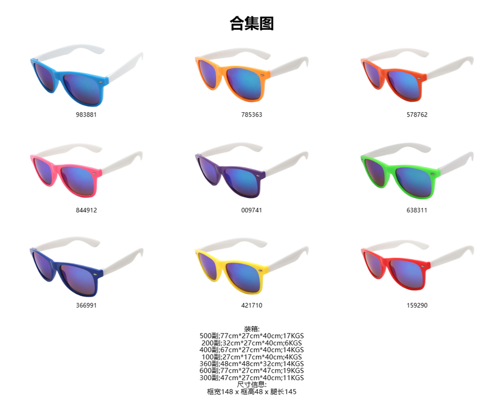 镜框材质:pc全新塑料 满足各种环保要求