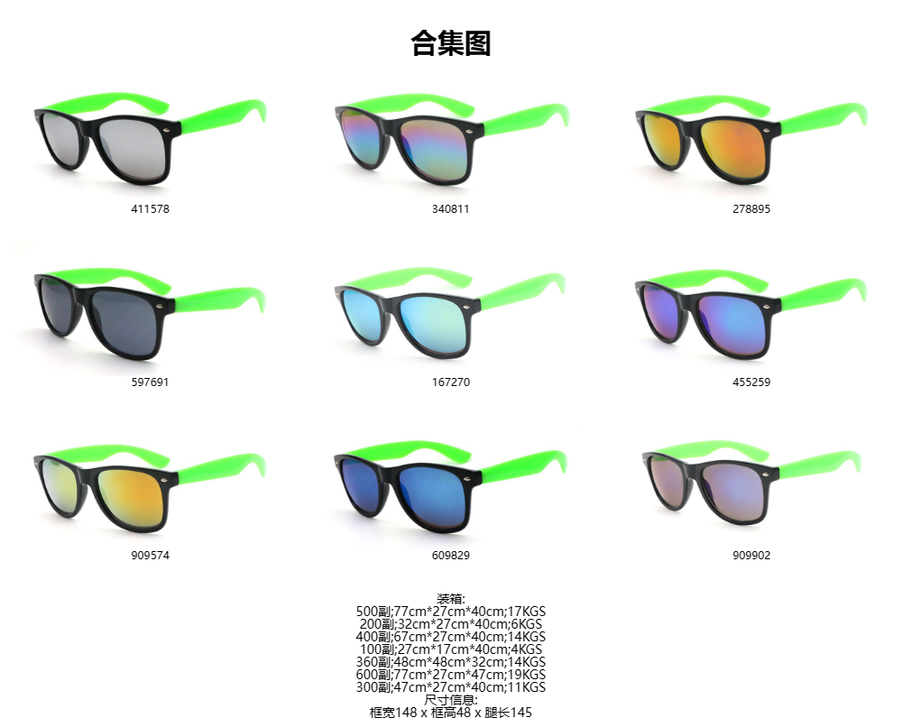 黑框荧光绿脚 彩膜 徒步旅行者促销礼品太阳镜 0星,基于0条评论