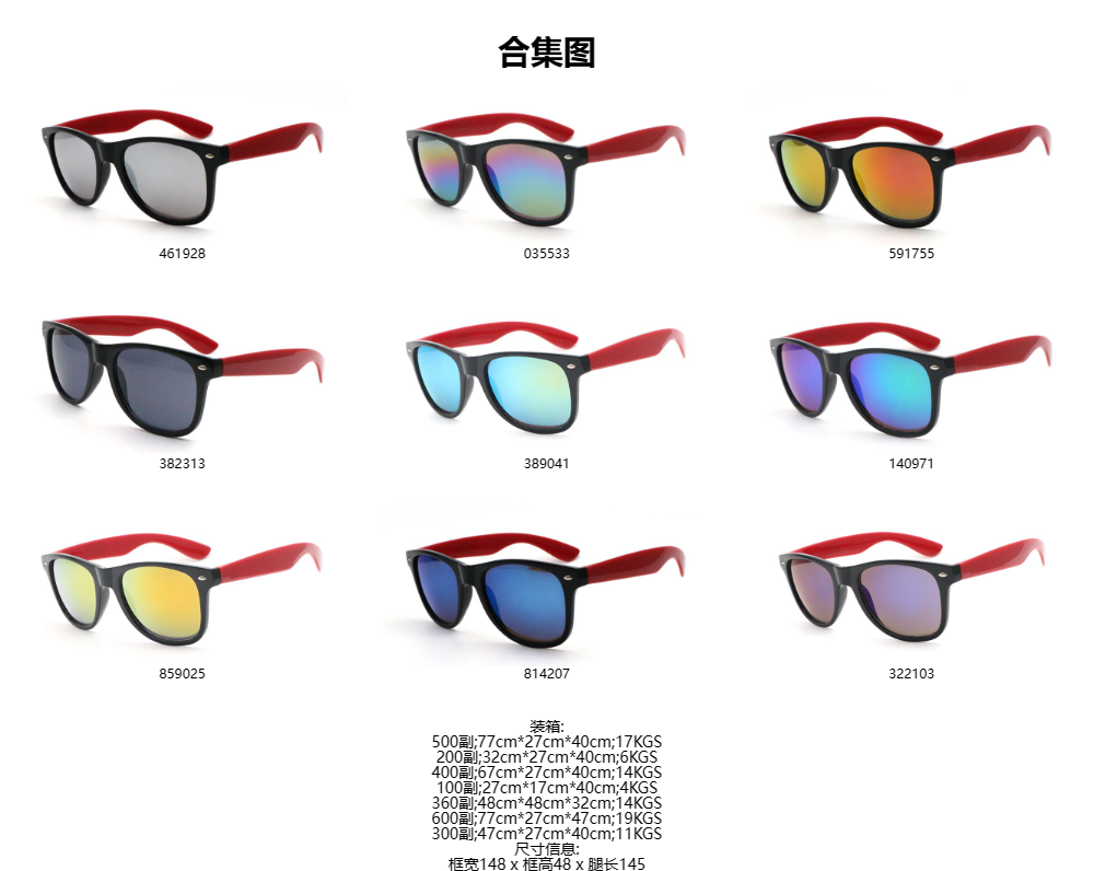 黑框暗红脚 彩膜 徒步旅行者促销礼品太阳镜 | 90000