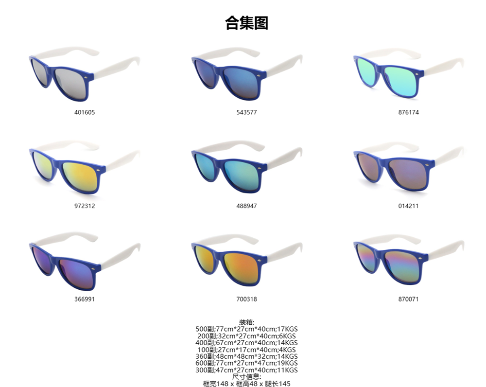 镜框材质:pc全新塑料 满足各种环保要求