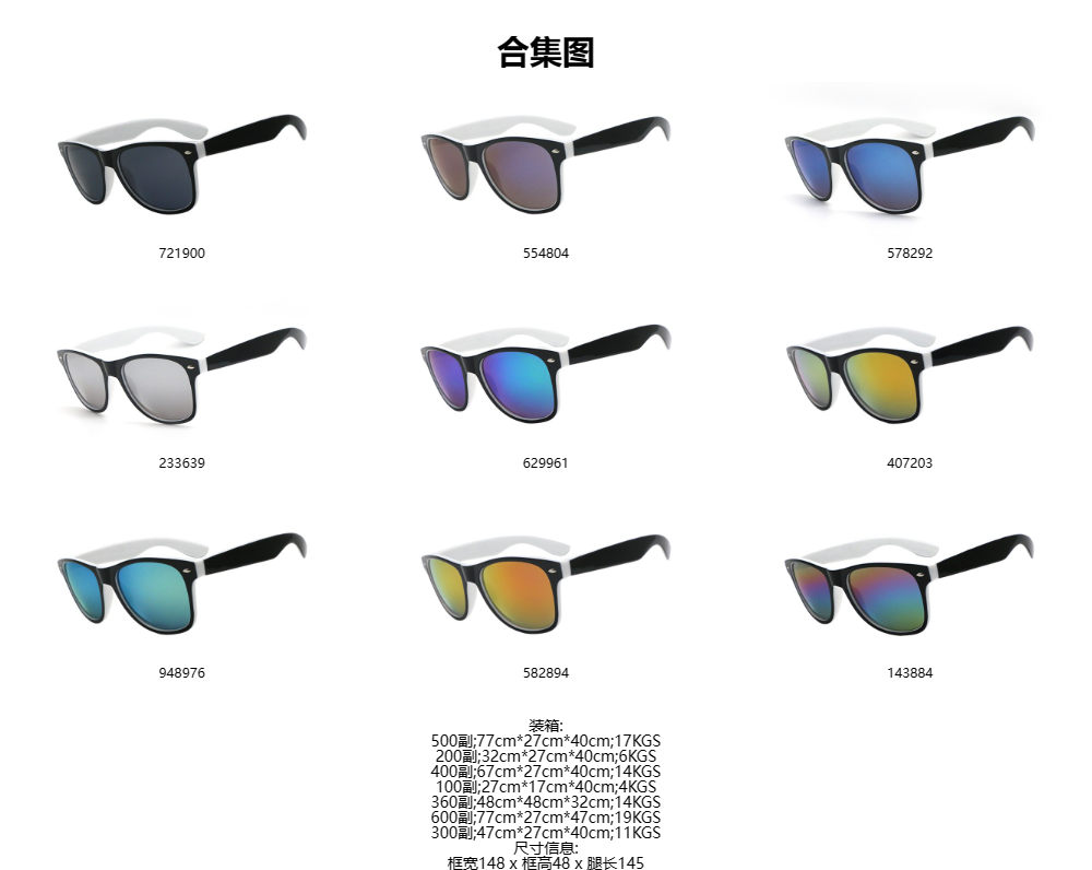 外黑内白框 彩膜 徒步旅行者促销礼品太阳镜 | 90000