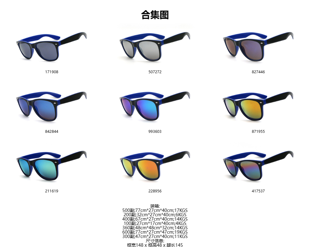 外黑内宝蓝框 彩膜 徒步旅行者促销礼品太阳镜 | 90000