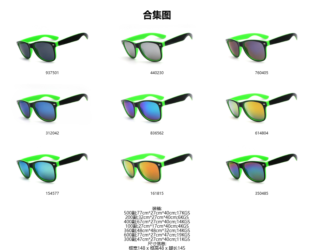 外黑内荧光绿框 彩膜 徒步旅行者促销礼品太阳镜 0星,基于0条评论