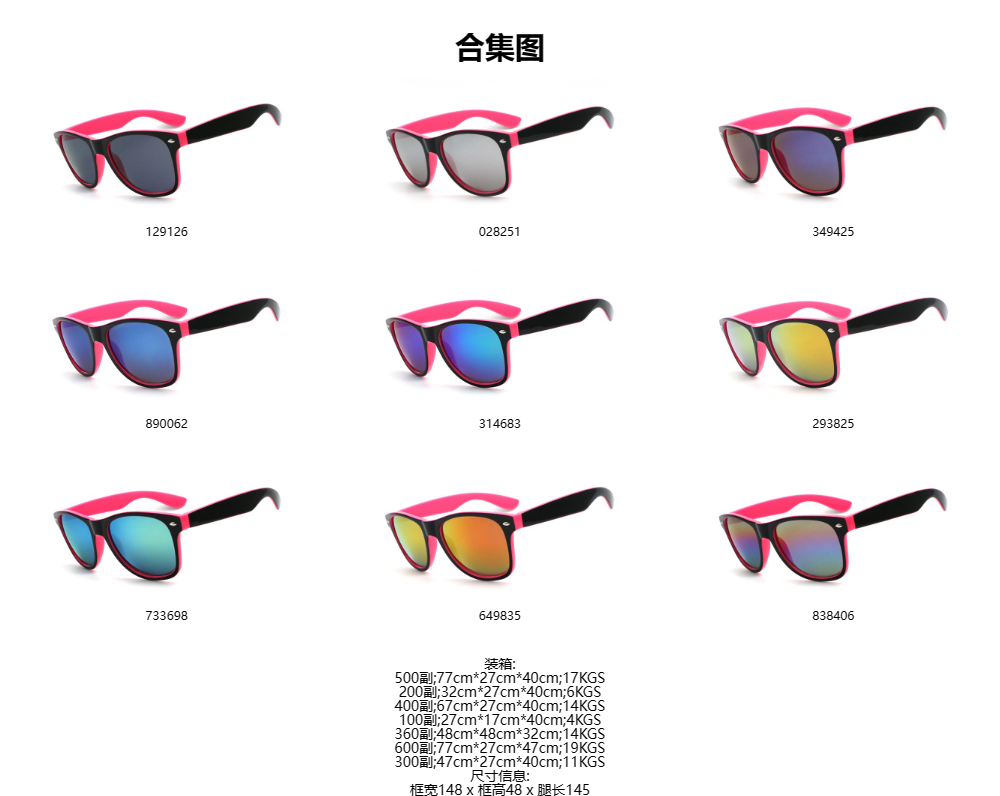 外黑内荧光粉框 彩膜 徒步旅行者促销礼品太阳镜 | 90000