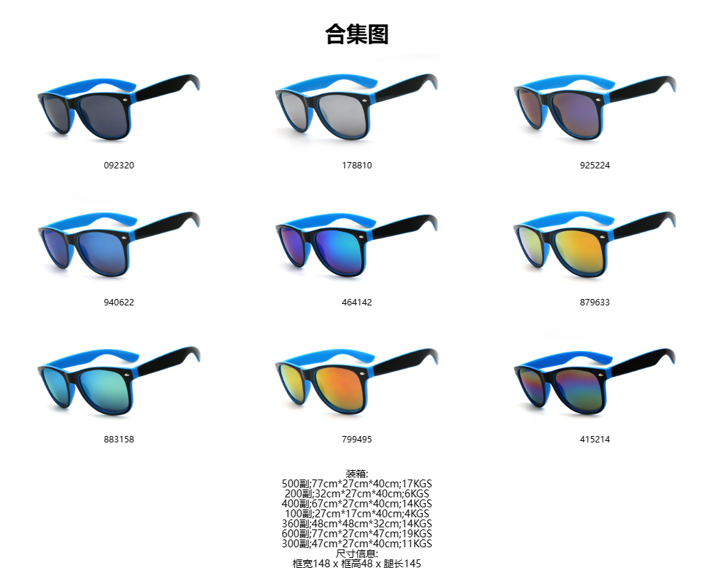 外黑内荧光蓝框 彩膜 徒步旅行者促销礼品太阳镜 | 90000