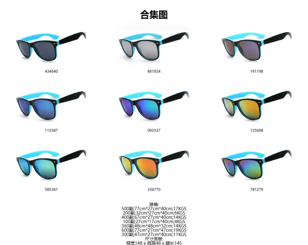 外黑内浅蓝框 彩膜 徒步旅行者促销礼品太阳镜 | 90000