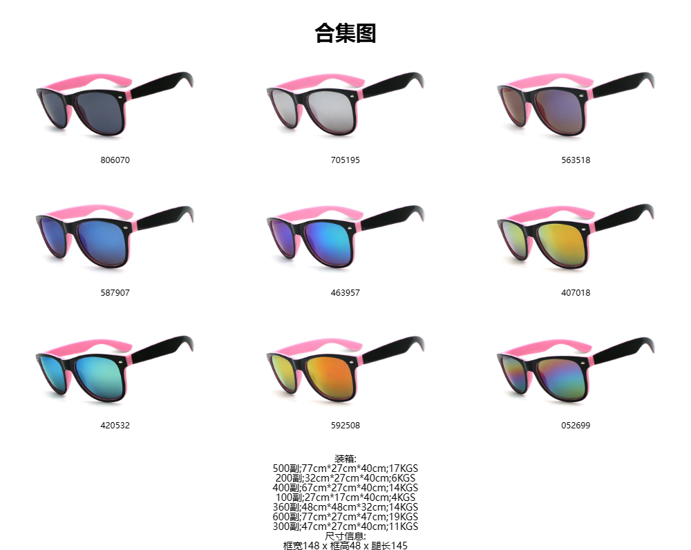 镜框材质:pc全新塑料 满足各种环保要求
