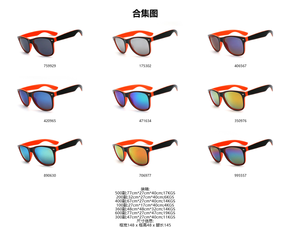 外黑内桔红框 彩膜 徒步旅行者促销礼品太阳镜 | 90000