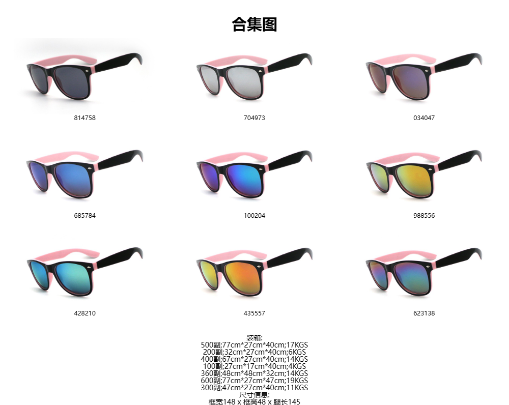 镜框材质:pc全新塑料 满足各种环保要求