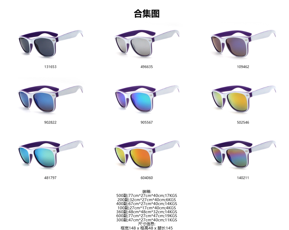 外白内紫框 彩膜 徒步旅行者促销礼品太阳镜 | 90000