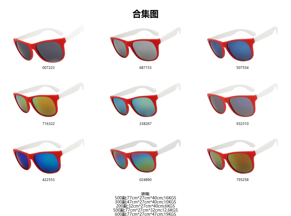 K822 大红框白脚 彩膜 促销太阳镜 礼品眼镜 0星,基于0条评论