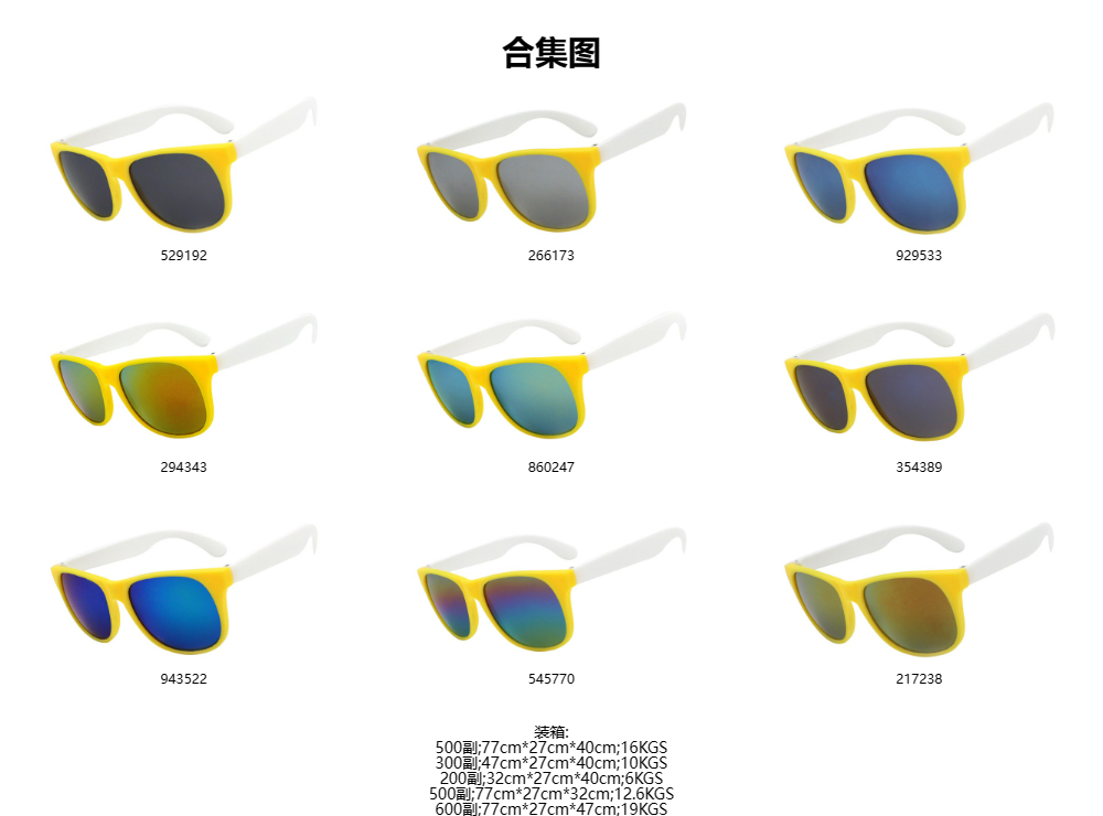 K822 荧光黄框白脚 彩膜 促销太阳镜 礼品眼镜 0星,基于0条评论