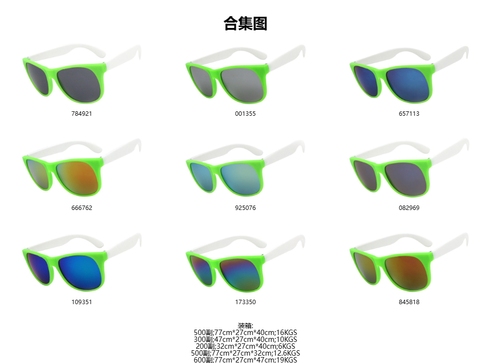K822 荧光绿框白脚 彩膜 促销太阳镜 礼品眼镜 0星,基于0条评论