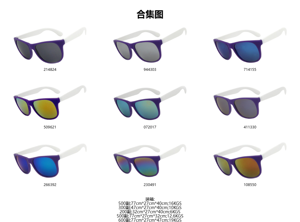 K822 紫框白脚 彩膜 促销太阳镜 礼品眼镜 0星,基于0条评论