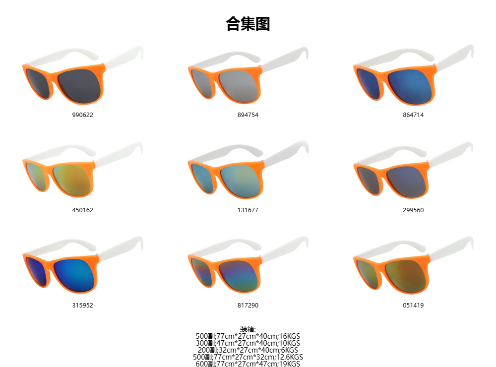 K822 荧光橙框白脚 彩膜 促销太阳镜 礼品眼镜 0星,基于0条评论