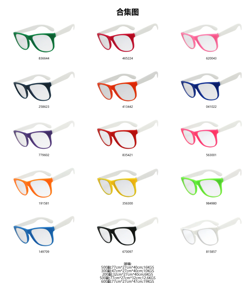 K822 白平防蓝光膜 彩框白脚 促销太阳镜 礼品眼镜 | 750000