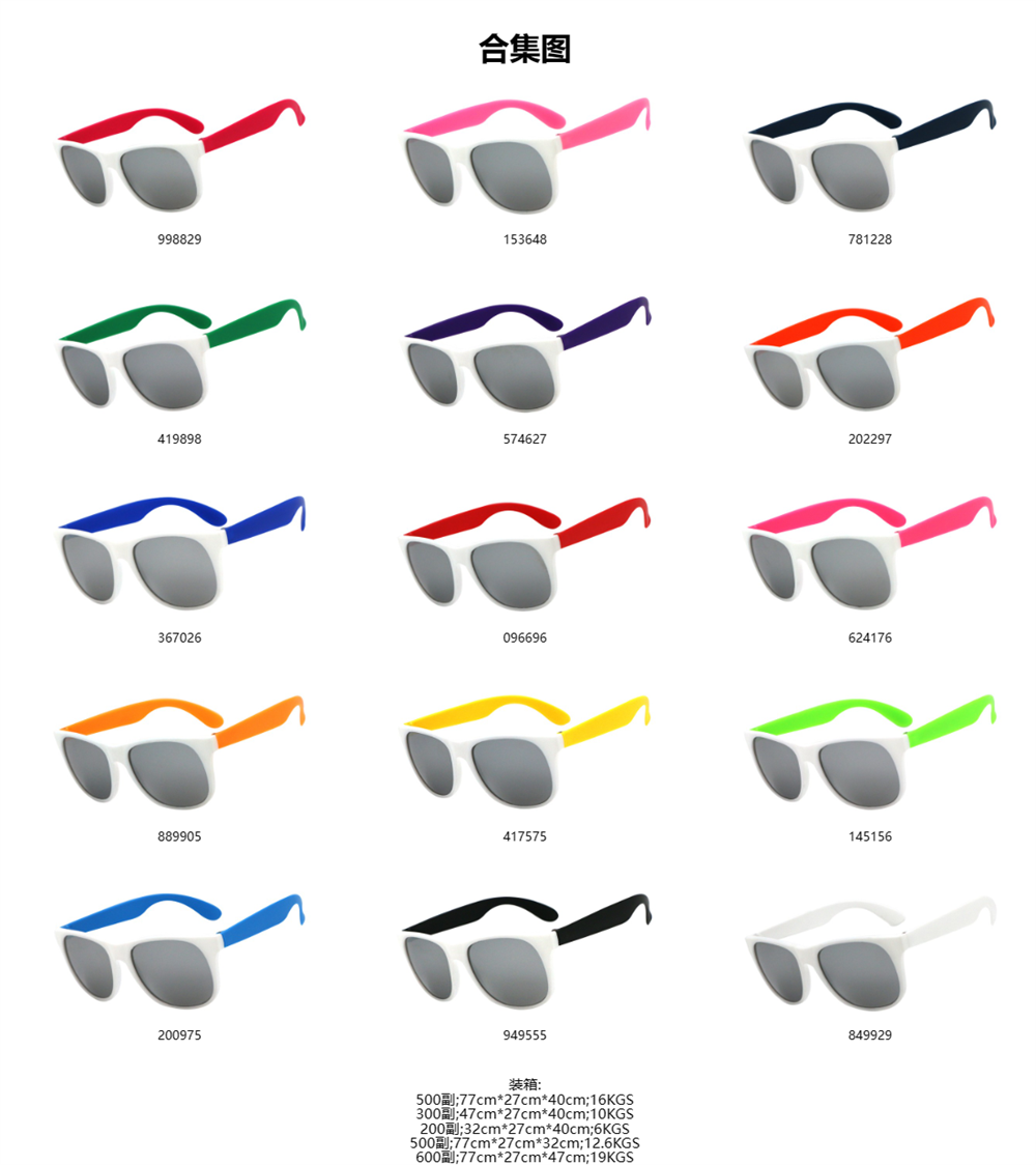 K822 白水银白膜 白框彩脚 促销太阳镜 礼品眼镜