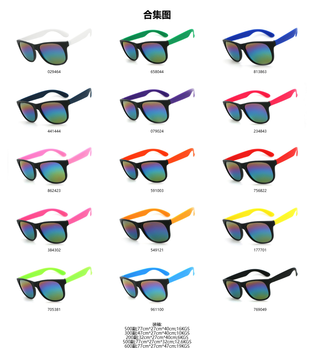 K822 五彩水银五彩膜 黑框彩脚 促销太阳镜 礼品眼镜 0星,基于0条评论