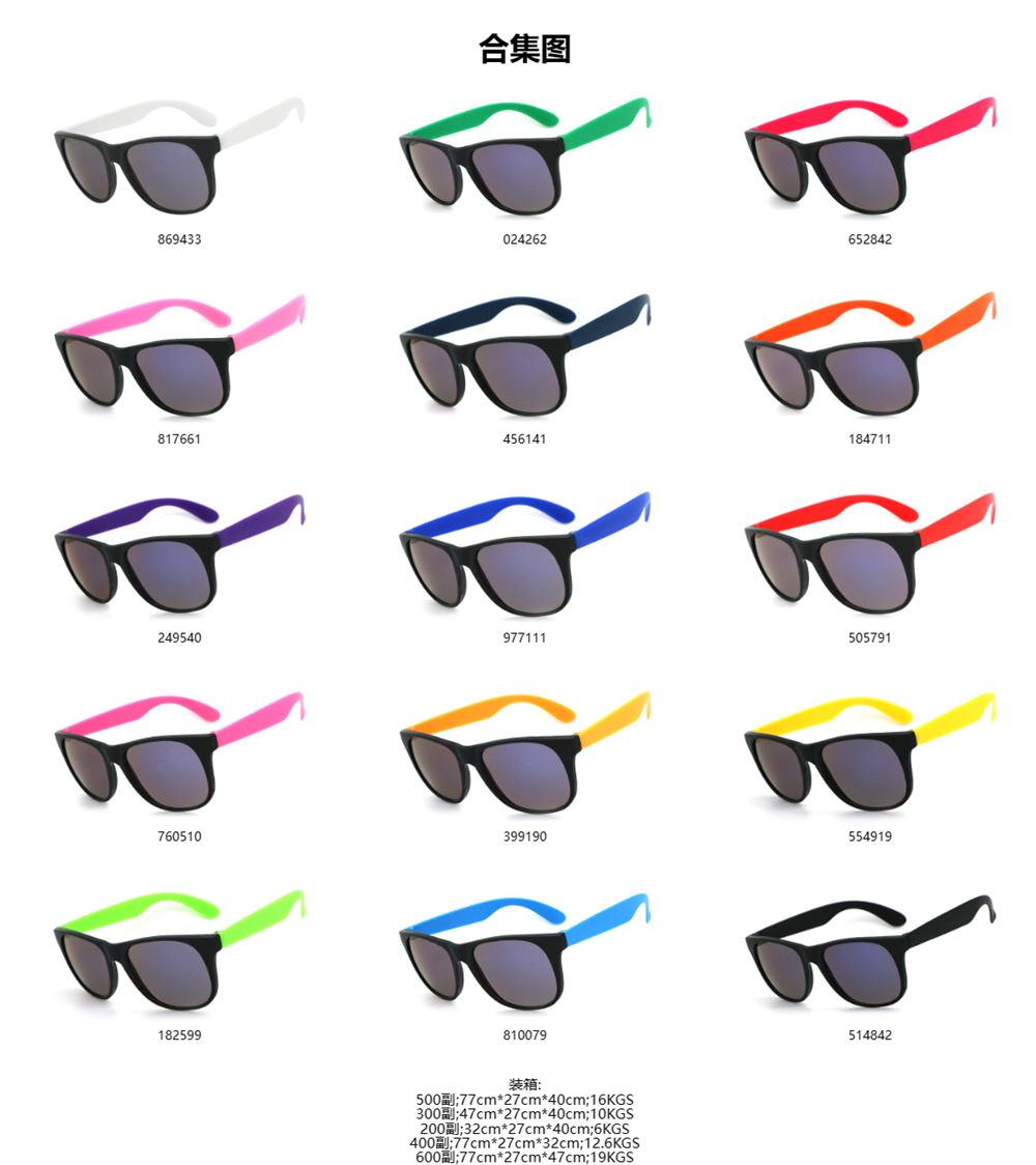 K822 蓝水银蓝膜 黑框彩脚 促销太阳镜 礼品眼镜 0星,基于0条评论
