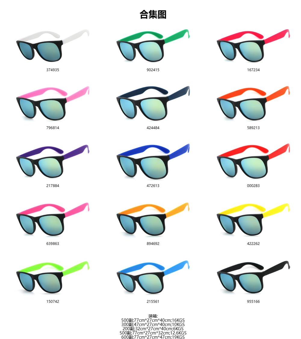 K822 金水银金膜 黑框彩脚 促销太阳镜 礼品眼镜 0星,基于0条评论