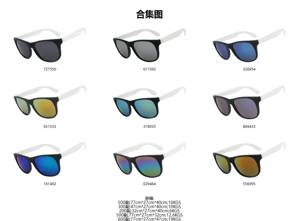 K822 黑框白脚 彩膜 促销太阳镜 礼品眼镜 0星,基于0条评论