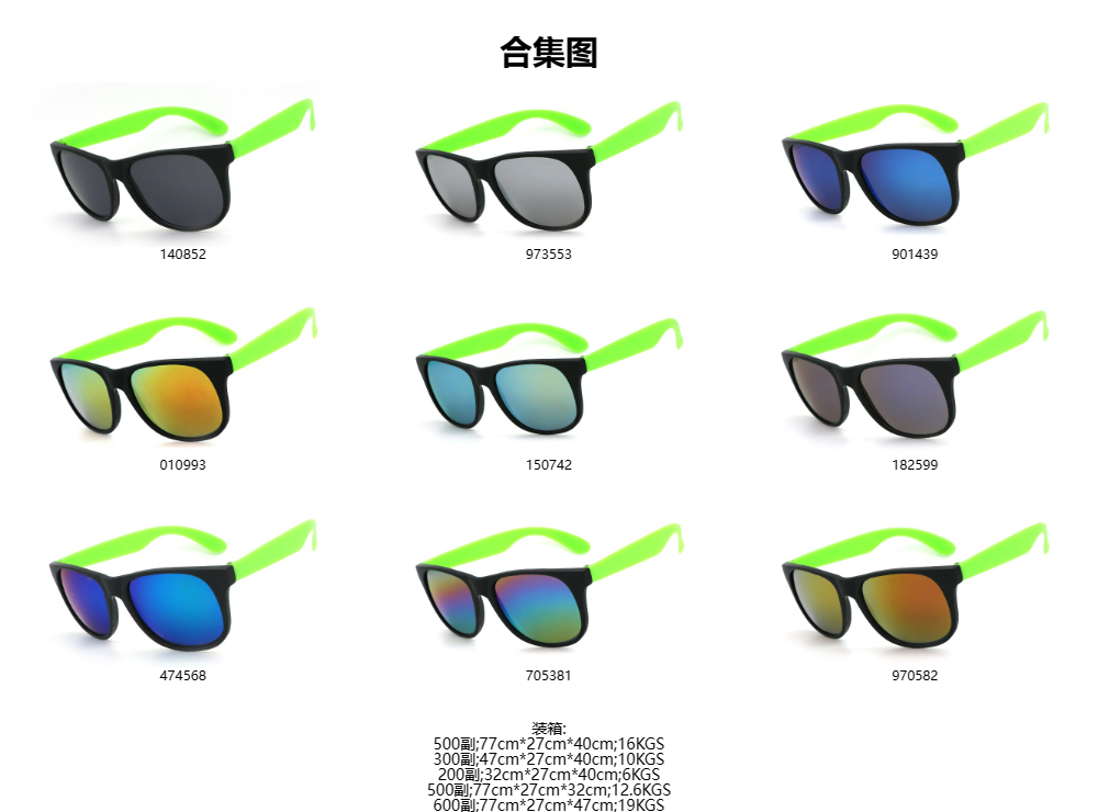K822 黑框荧光绿脚 彩膜 促销太阳镜 礼品眼镜 | 450000
