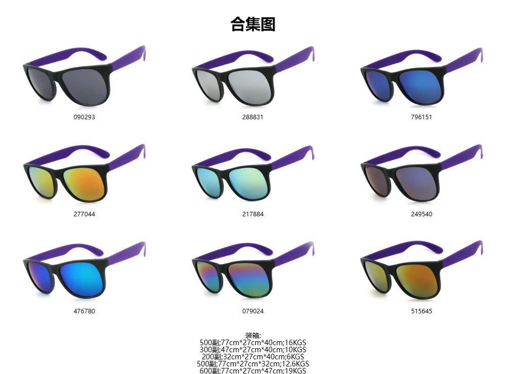 K822 黑框紫脚 彩膜 促销太阳镜 礼品眼镜 0星,基于0条评论