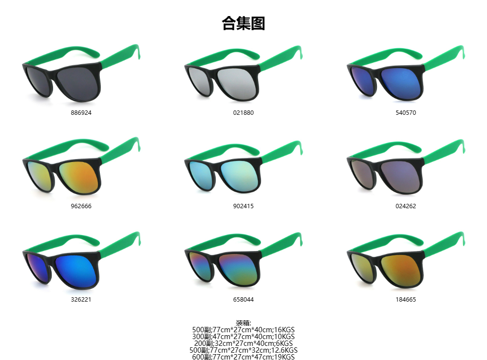 K822 黑框草绿脚 彩膜 促销太阳镜 礼品眼镜 0星,基于0条评论