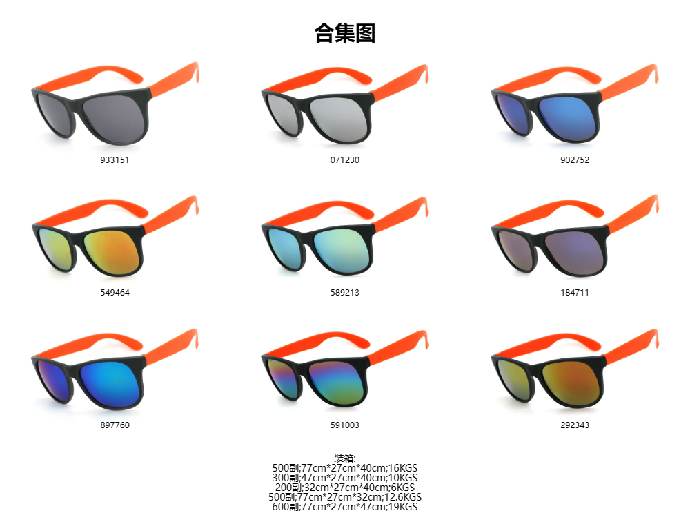 K822 黑框桔红脚 彩膜 促销太阳镜 礼品眼镜 | 450000