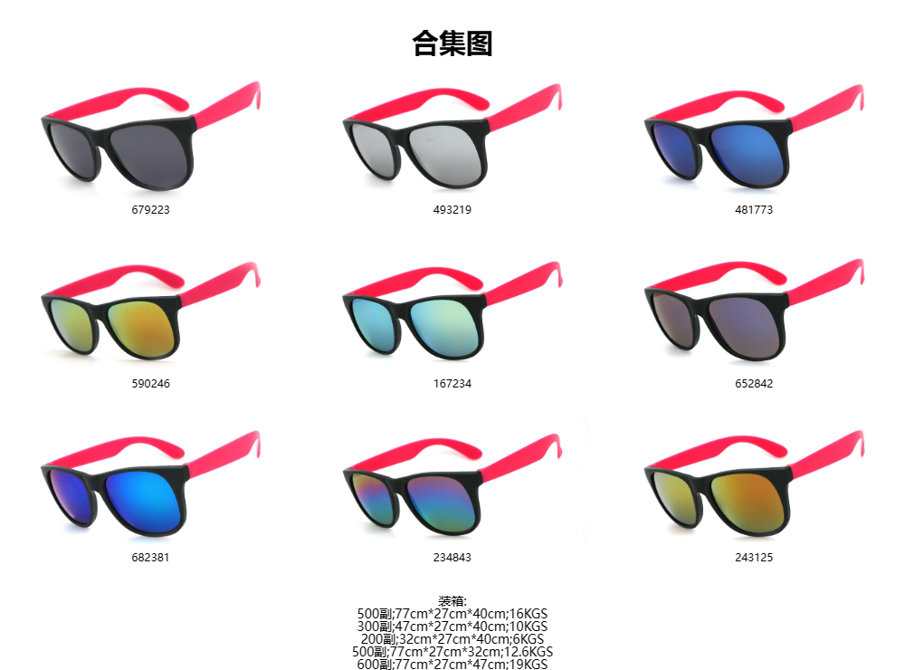 K822 黑框玫红脚 彩膜 促销太阳镜 礼品眼镜的复制