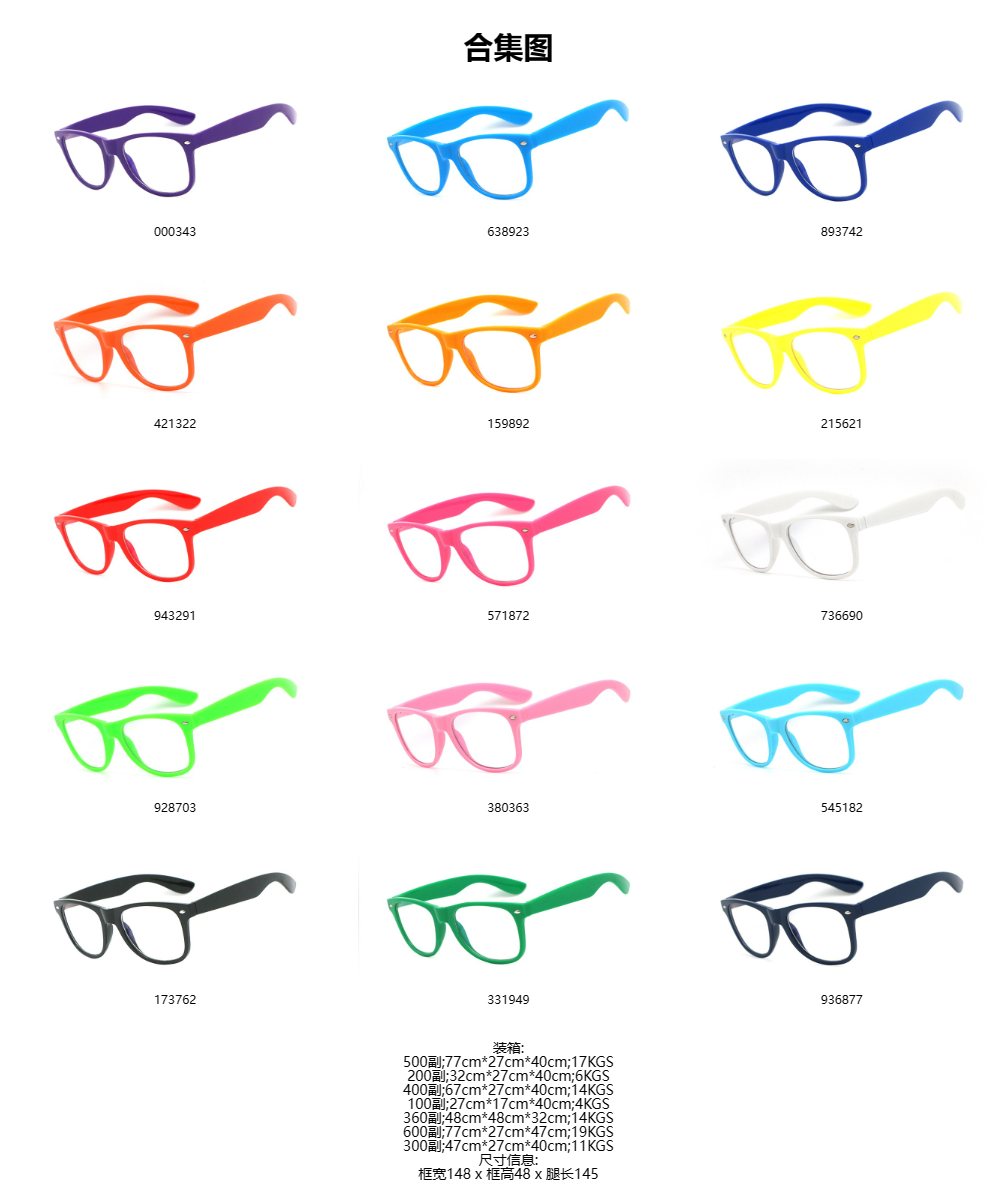 镜框材质:pc全新塑料 满足各种环保要求